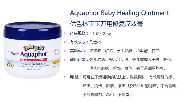 Aquaphor Healing Ointment Baby Skin Protectant Dermatologist Pediatrician Recommended Advanced Therapy For dry, cracked or irritated skin Relieves diaper rash within 6hrs Multi-purpose. Aquaphor Healing Ointment Advanced Therapy For minor cuts, scrapes and burns Clinically proven to restore ... Doc Viewer